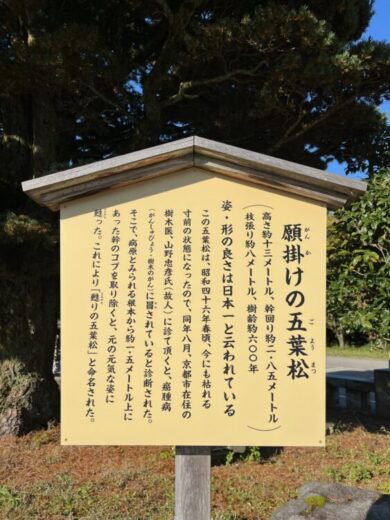 パワースポットである 樹齢約600年の 願掛けの五葉松 です。