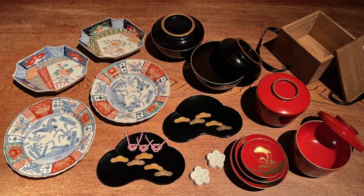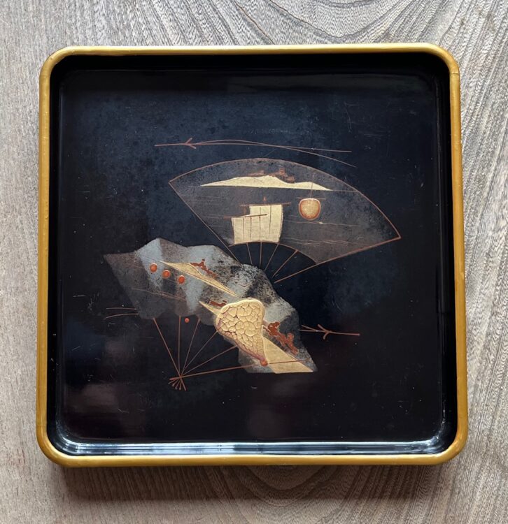 松形の輪島塗、高蒔絵の盆、朱塗りの盃などなど