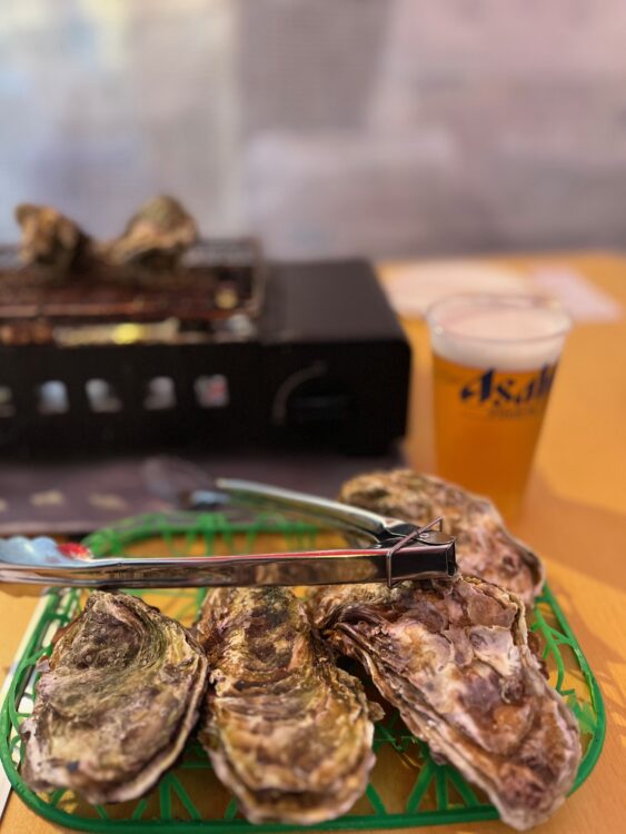 最終日に、駅前の「牡蠣小屋」へ。