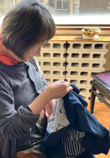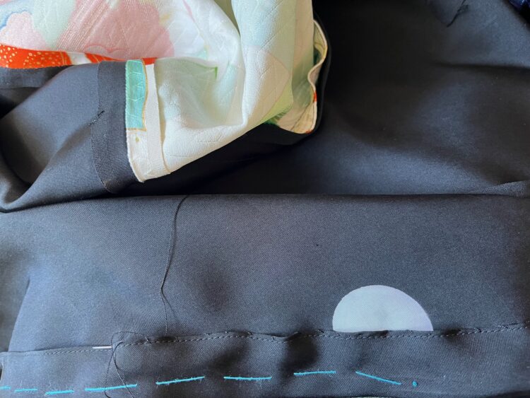 刺し子、袖の型紙、黒留の裾まつり。