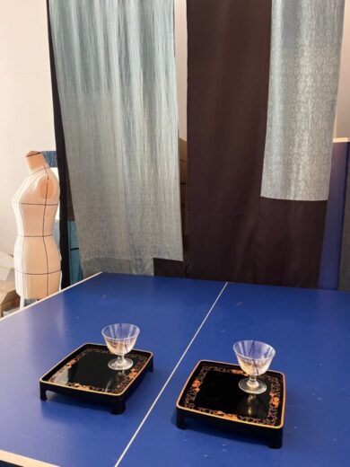 土間に 卓球台を置いて、テーブル代わりにしましょう。